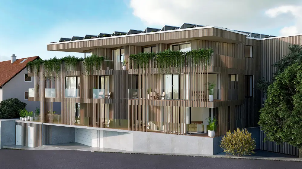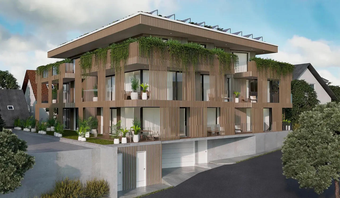 Die Ausstattung des HOLZMICHELS ist geprägt von nachhaltigen und hochwertigen Materialien. Die Wahl von Eichendielen für den Fußboden verleiht den Wohneinheiten nicht nur eine zeitlose Eleganz, sondern auch Langlebigkeit und eine warme Atmosphäre. Die hochwertigen Holz-Alu-Fenster sind das Nonplusultra in Sachen Qualität, bieten herausragende Wärmedämmung und verleihen dem Haus ein stilvolles Design.